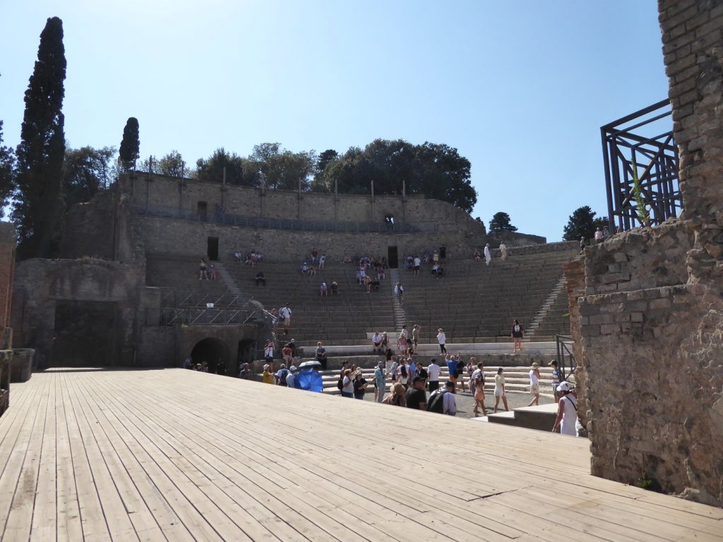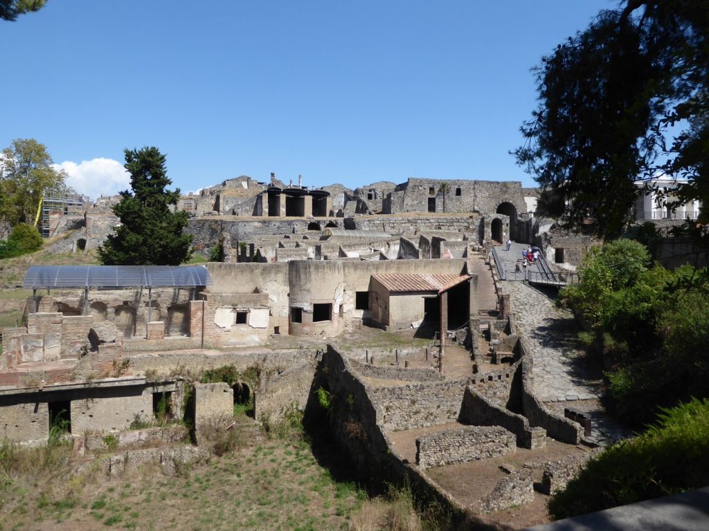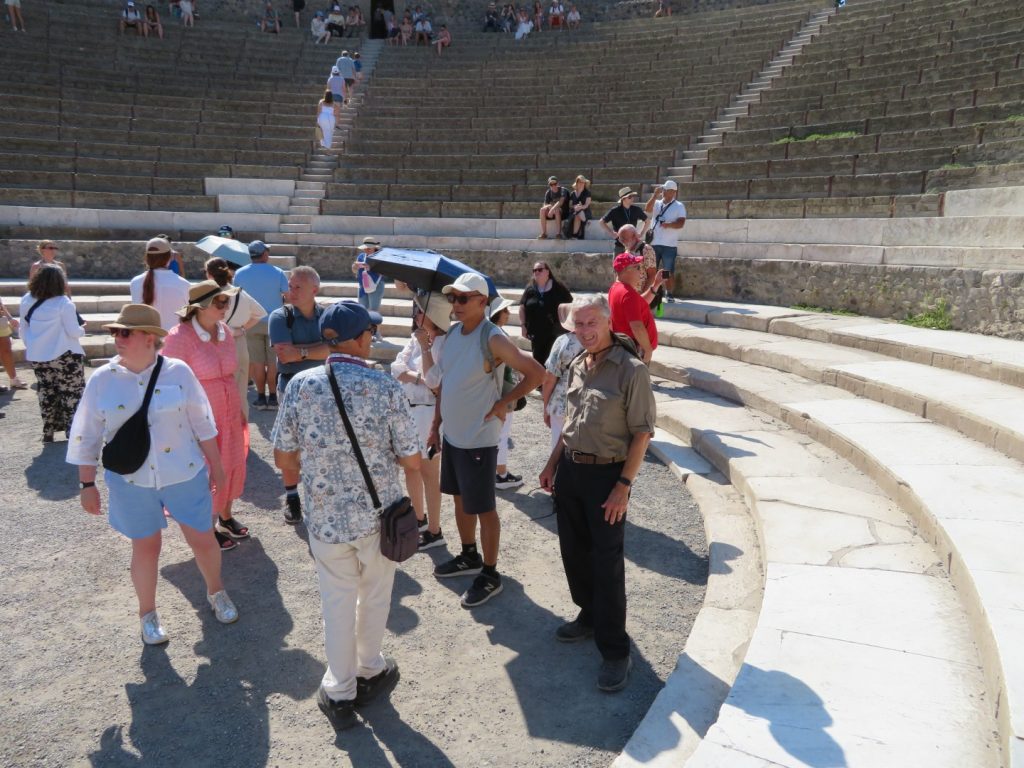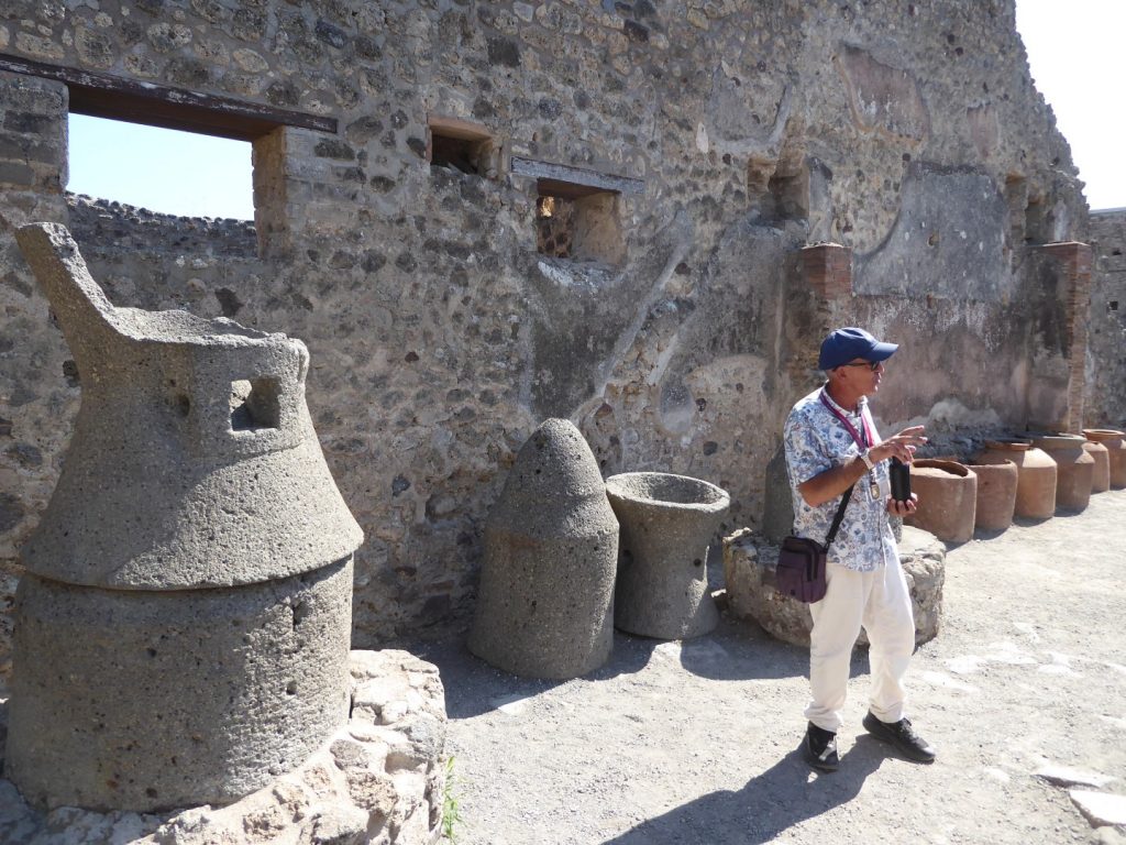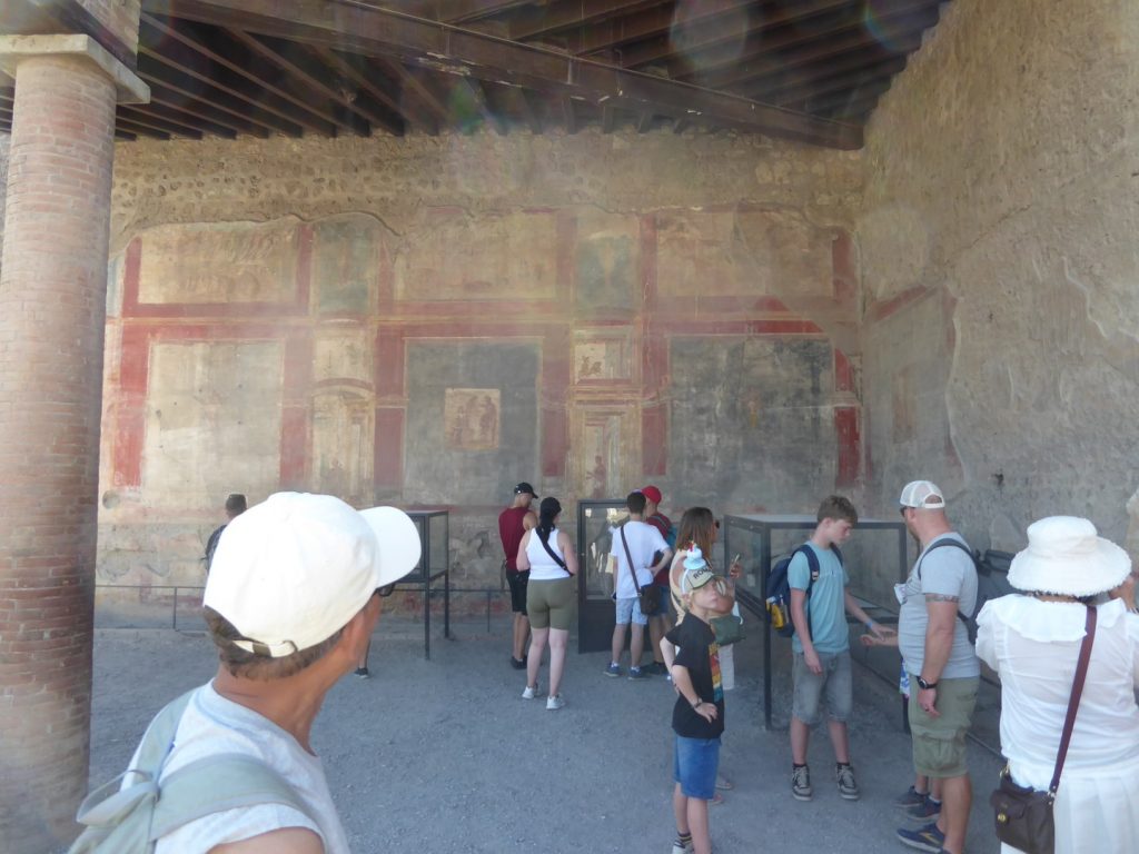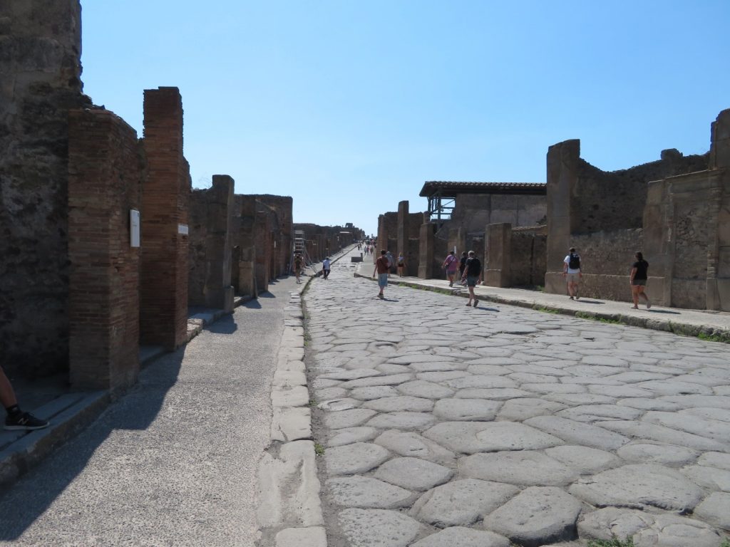 We visited Herculaneum in the morning & after a traditional Pizza lunch (Margherita of course!) we visited Pompeii in the afternoon. What’s been uncovered in Pompeii is several times the size of Herculaneum. I have to say that trying to “do” these sites in a couple of hours each is an impossible task. There is so much to see & take in and even though we had an excellent, experienced guide in Raffaello, we didn’t really do them justice. Whereas in Herculaneum we looked mostly at domestic buildings, in Pompeii we were shown more of the public ones.