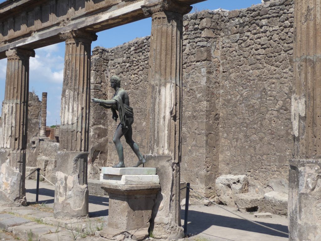 The sculpture of Apollo shooting arrows is a copy – the original is now in the National Archaeological Museum in Naples.