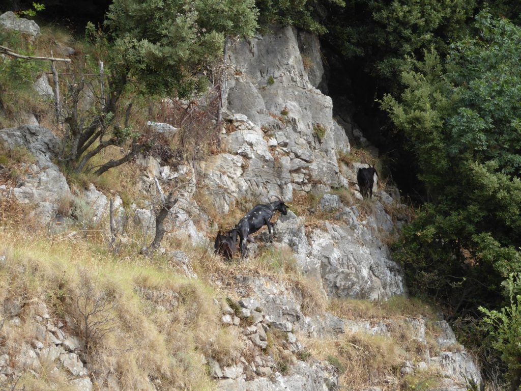 Apparently the Lattari Mountains are named after the milk from the local goats which we noticed on the mountainside. However it wasn’t long before we encountered them almost knocking us off our path as the video shows if you click on either of the pictures below.