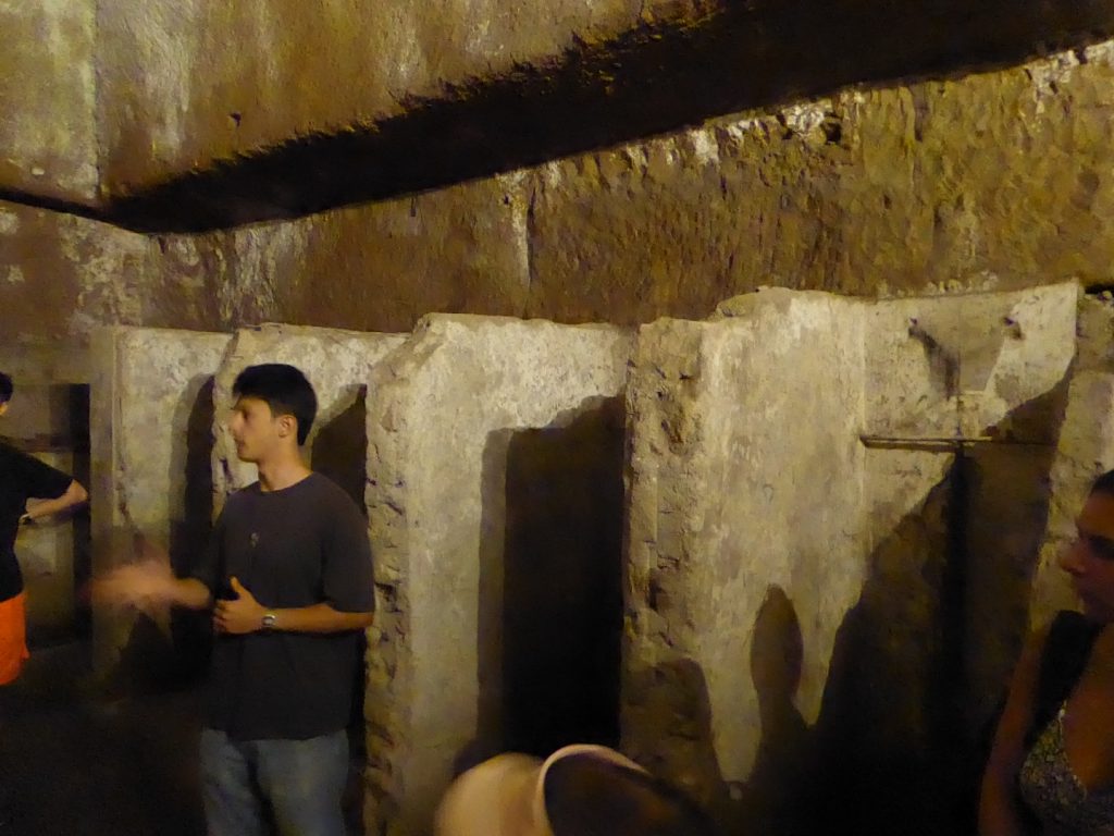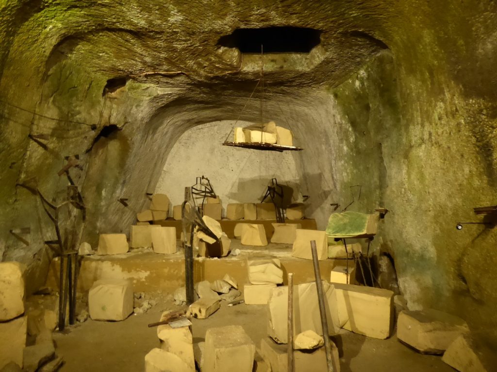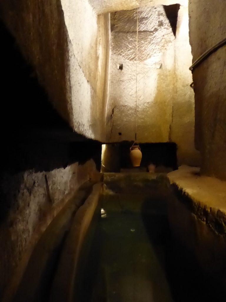 The underground tunnels were formed by the quarries for building materials by the early Greeks in the area, some 2,400 years ago. Then the Romans used the system for storing and supplying water for the city. Finally in WWII they were used as underground shelters for the general population.