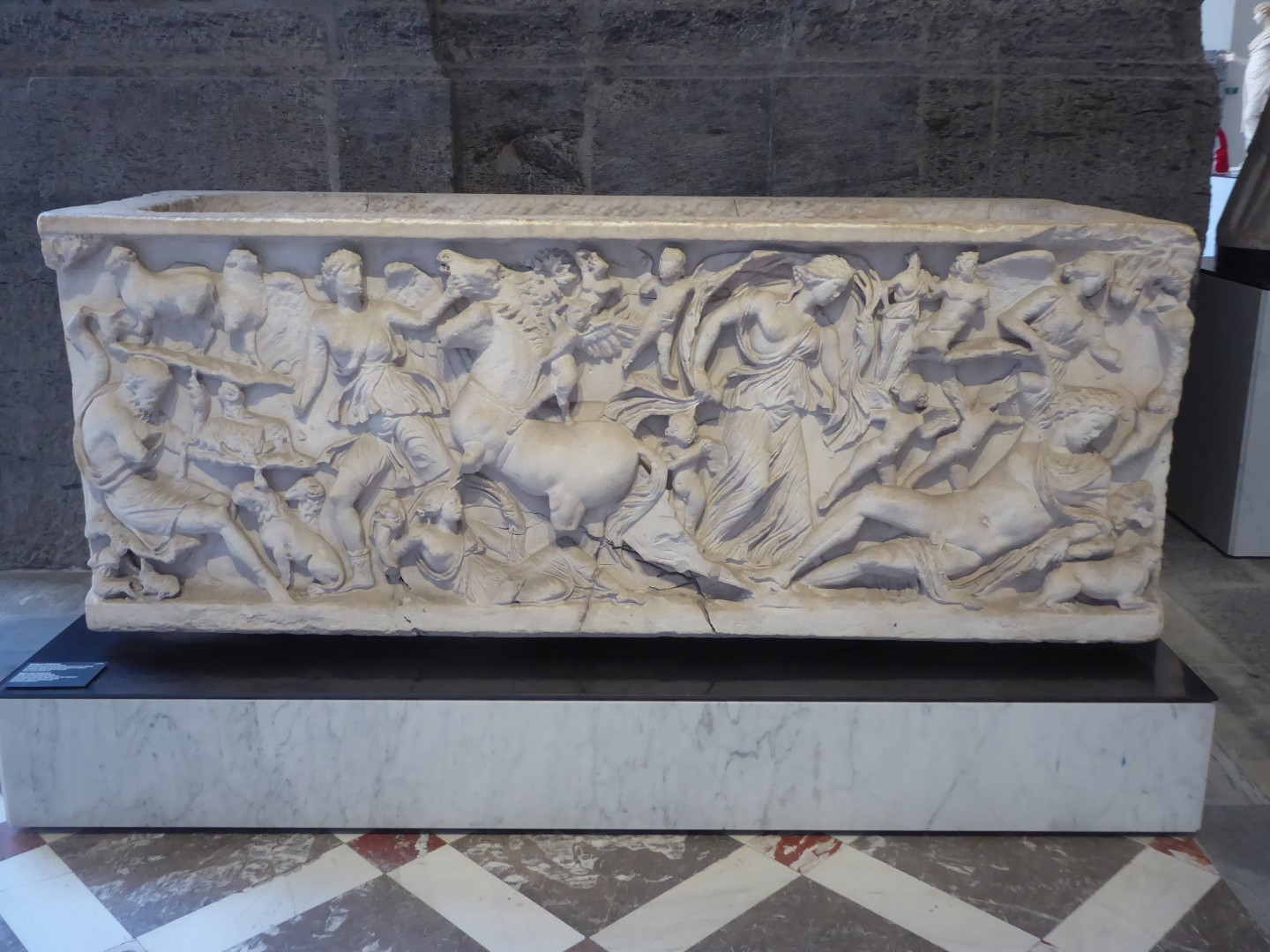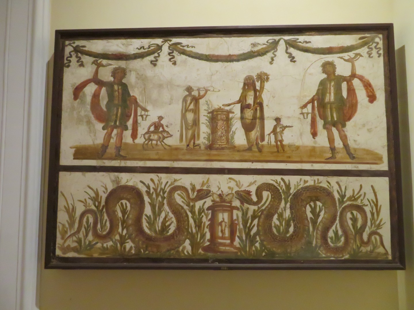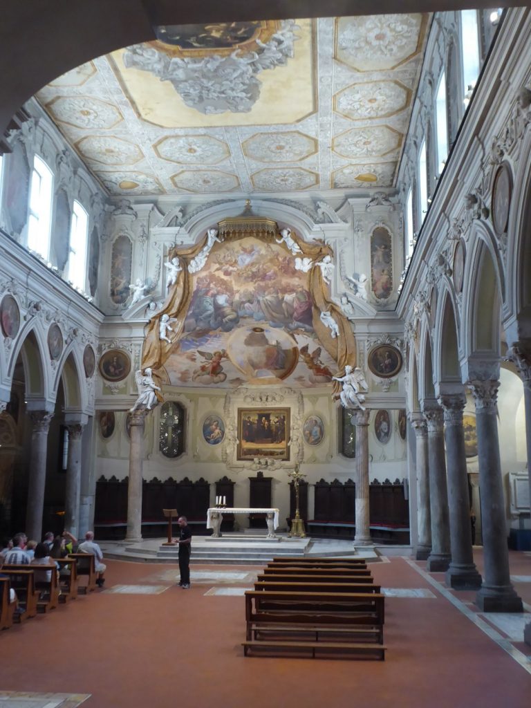 Just walking through the narrow streets in the old quarter with its densely populated tenement housing was fascinating. However in terms of tourist attractions, we started off underground with a guided tour of the ancient labyrinth of tunnels, the Napoli Sotterranea. Next I wanted to see Caravaggio’s innovative “The Seven Works of Mercy” in the Pio Monte della Misericordia. From here we crossed a small piazza to the enormous baroque Duomo. Finally it was a dash to the splendid National Archaeological Museum where we saw treasures from Herculaneum & Pompeii.