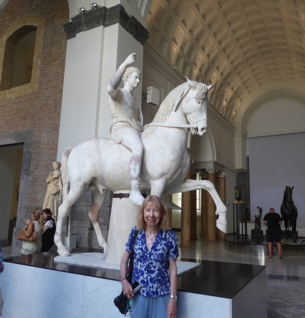 Ann in front of the marble statue of Marcus Nonius Balbus from Herculaneum