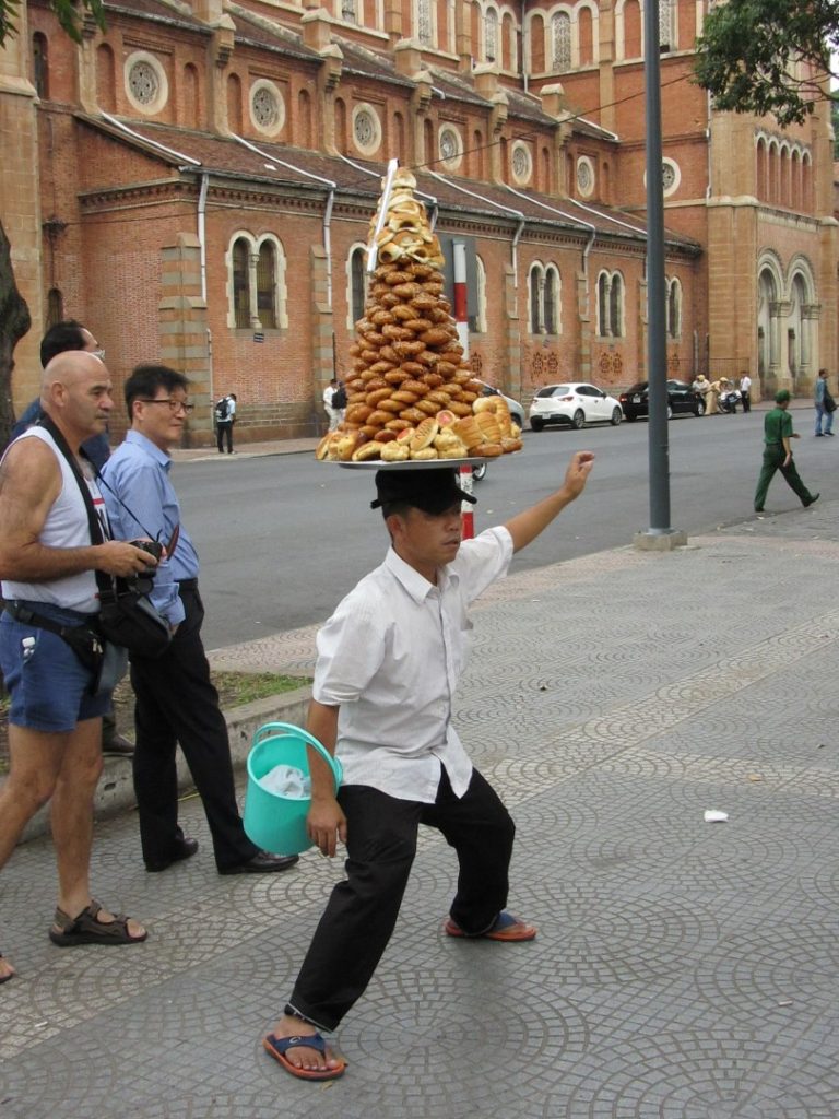 Novelty Doughnut seller outside Notre Dame Cathedral in Saigon / HCM City.