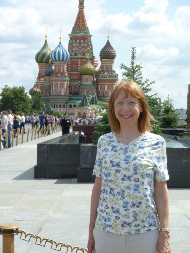 Looking North is the State History Museum, East is the GUM store, South is St Basil’s Cathedral and West are the Kremlin walls with Lenin’s Tomb in the centre.
