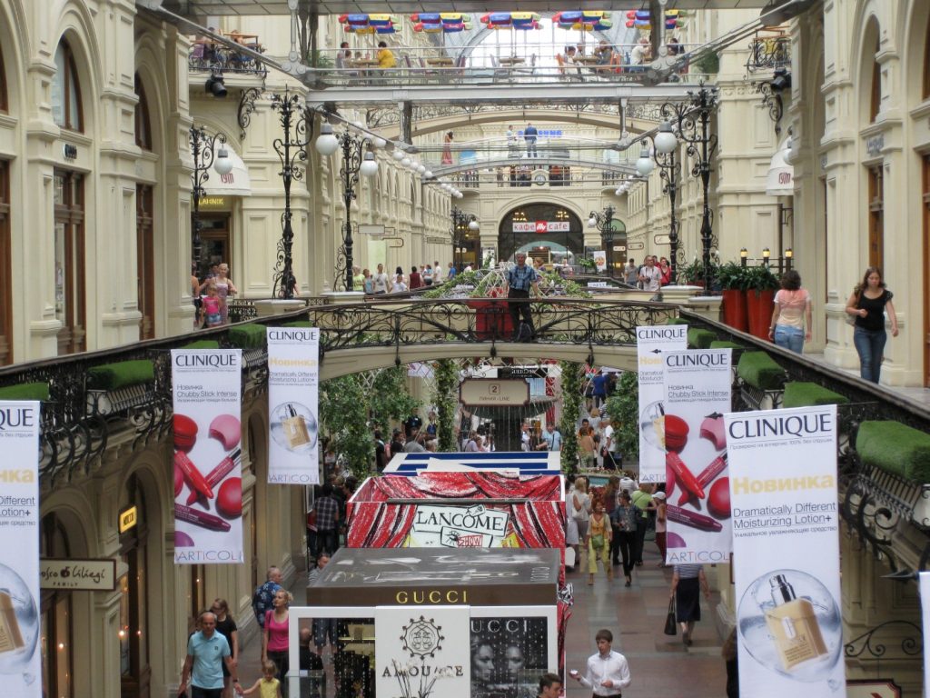 The famous GUM store relies on its position on Red Square and the old image of its exclusiveness to attract visitors.