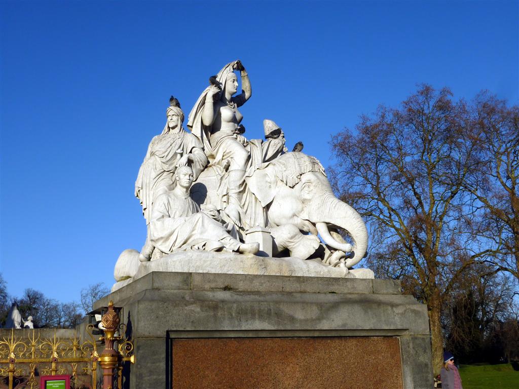 At the four corners of the complex are sculpture groups representing the main continents of the world – Europe, Asia, Africa and the Americas. The photograph below shows Asia. The only hint that this represents Asia is the Elephant (with small not large ears!). Why on earth dressing the figures in Greek togas should indicate anything “Asian” beats me. Also I think it is a tad disingenuous (as well as extremely condescending – verging on titillation) to show a bare breasted woman on the elephant. Obviously the Victorians didn’t realise that those in the Indian sub-continent were a lot more modest in public than the sculptor would have us believe.