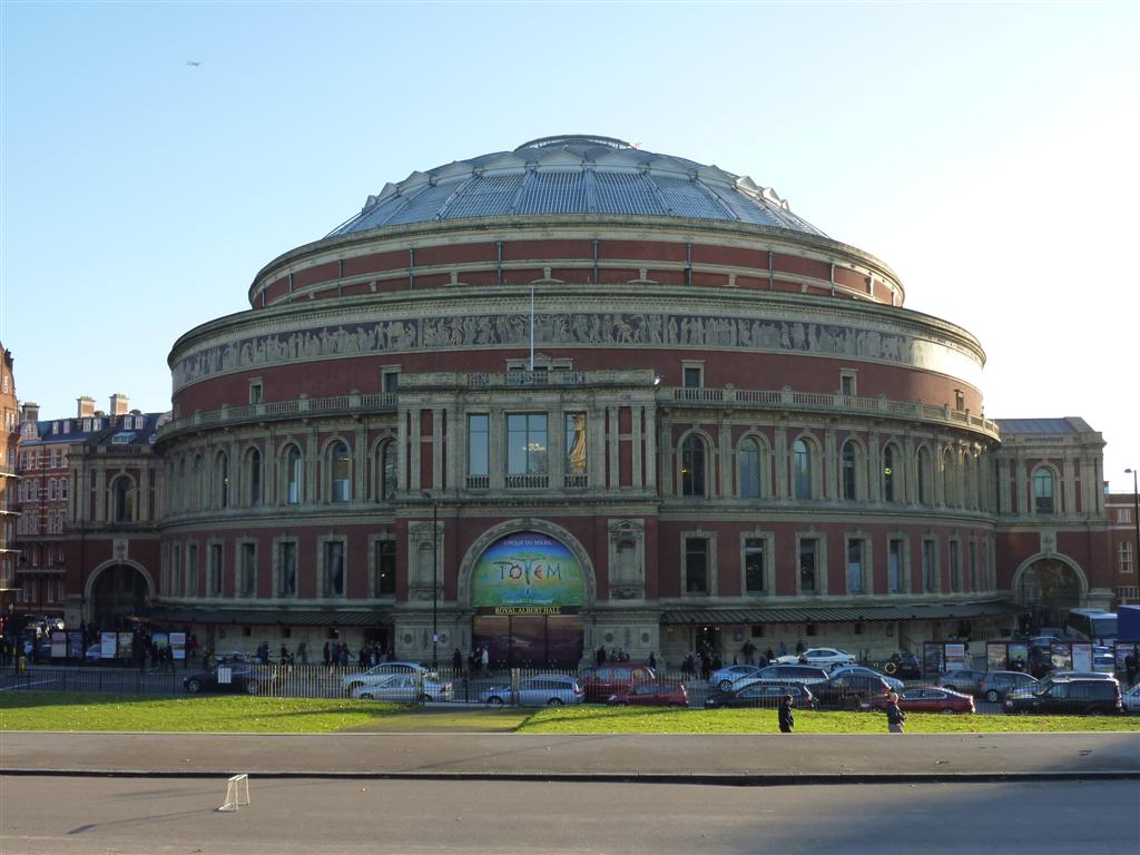 Prince Albert in his gilded throne broods over the Albert Hall across Kensington Gore.