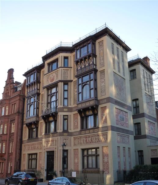 Looking to the West of the Albert Hall is this quaint oddity of a building, home to the Royal College of Organists for many years, but now converted to private apartments.
