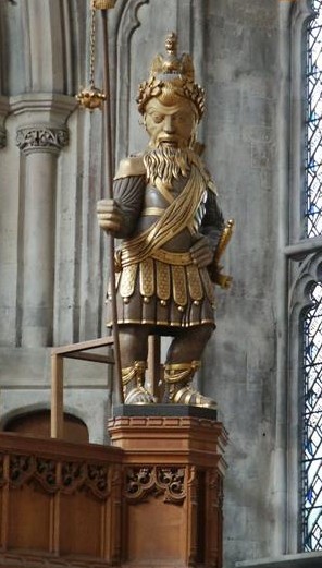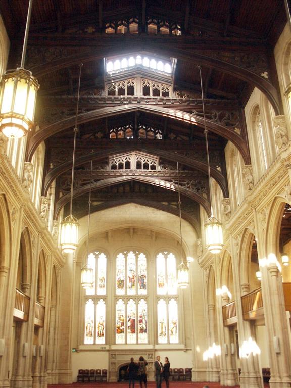 The Great Hall looking West. To either side of the Musician’s Gallery at the far end are statues of the mythical giants, Gog & Magog. They represent the legendary ancient Britons who were defeated by the exiled Trojans who founded Albion’s capital city – New Troy; i.e. the city of London.